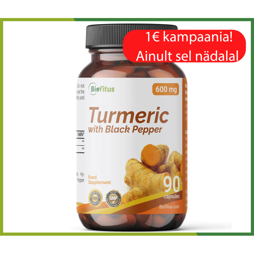 - Üks kapsel sisaldab koguni 600 mg kurkumit + musta pipart.